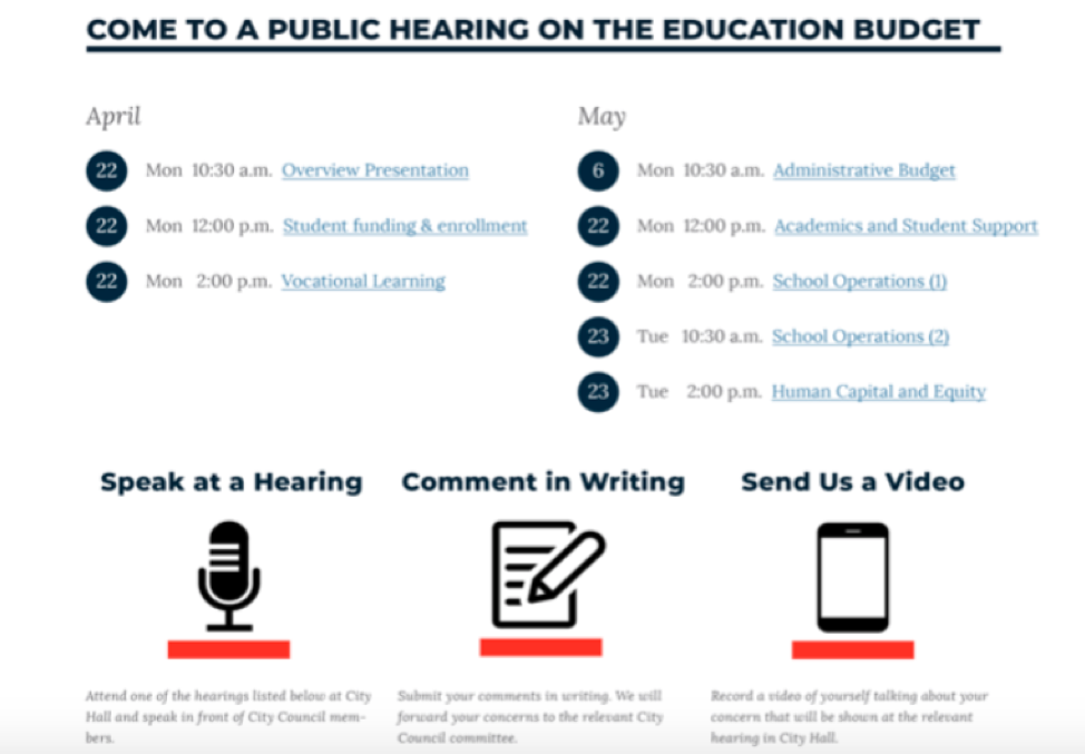 When enough residents raise their voices about a particular concern, change can happen and city dollars can be targeted toward solving developing problems. But the formal process for participating in public budget hearings, or public hearings of any kind, is currently difficult to find out about, navigate, or learn how to participate in as a newcomer. Public hearings offer a direct way of routing specific concerns, which is important when faced with a byzantine city government structure made up of the Mayor and his staff, 13 City Council members, and 72 individual departments each dedicated to unique issues.